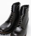 マウンテンブーツの要素を使いながら進化させた進化系バックジップブーツ。 "フランス中部にある、カーフスキン専門の老舗タンナー アノネイ社の『VOCALOU(ボカルー)』という種類のBOXカーフを採用。 上質なフランス原皮を使用しているので吟面は滑らかでキメが細かく、落ち着いた艶を有しています。吟面を谷折りにすることで浅く細かいシワが入るのもBOXカーフの特徴です。 Vibram社製軽量ソールを採用し、これだけボリュームがあるしっかりとしたブーツでも、 普通のハイカットスニーカーと変わらないくらいの軽さにしています。