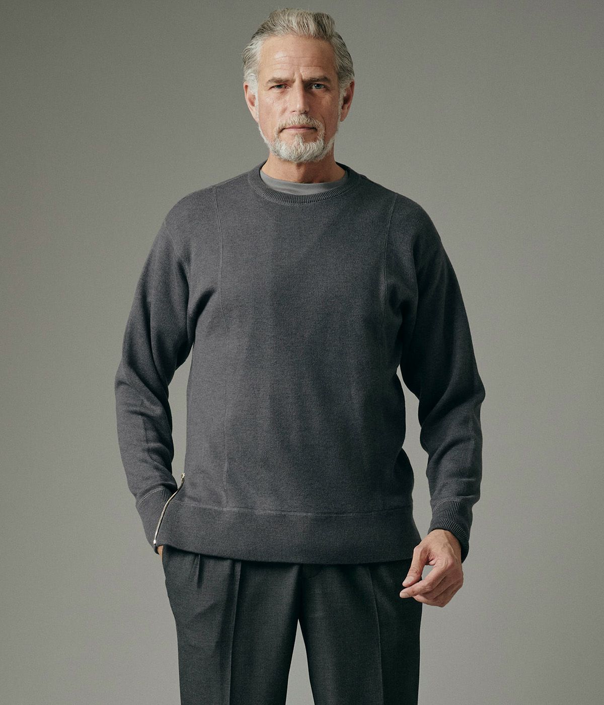 W ZIP CREW NECK KNIT