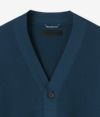 顔周りをすっきり見せるVネックデザインは、シャツやカットソーとのレイヤードに最適。クラシックな前開き仕様には、本水牛の天然ボタンを使用し、さりげない高級感を演出。軽さと機能性を備えた、オールシーズン使える一枚です。