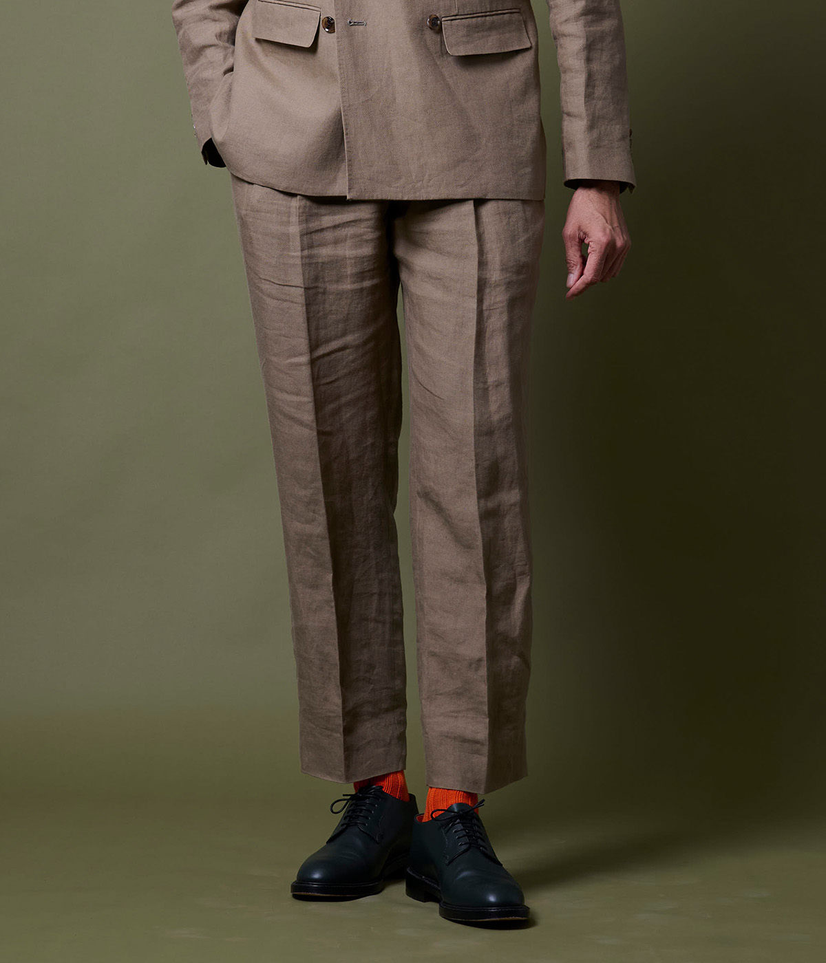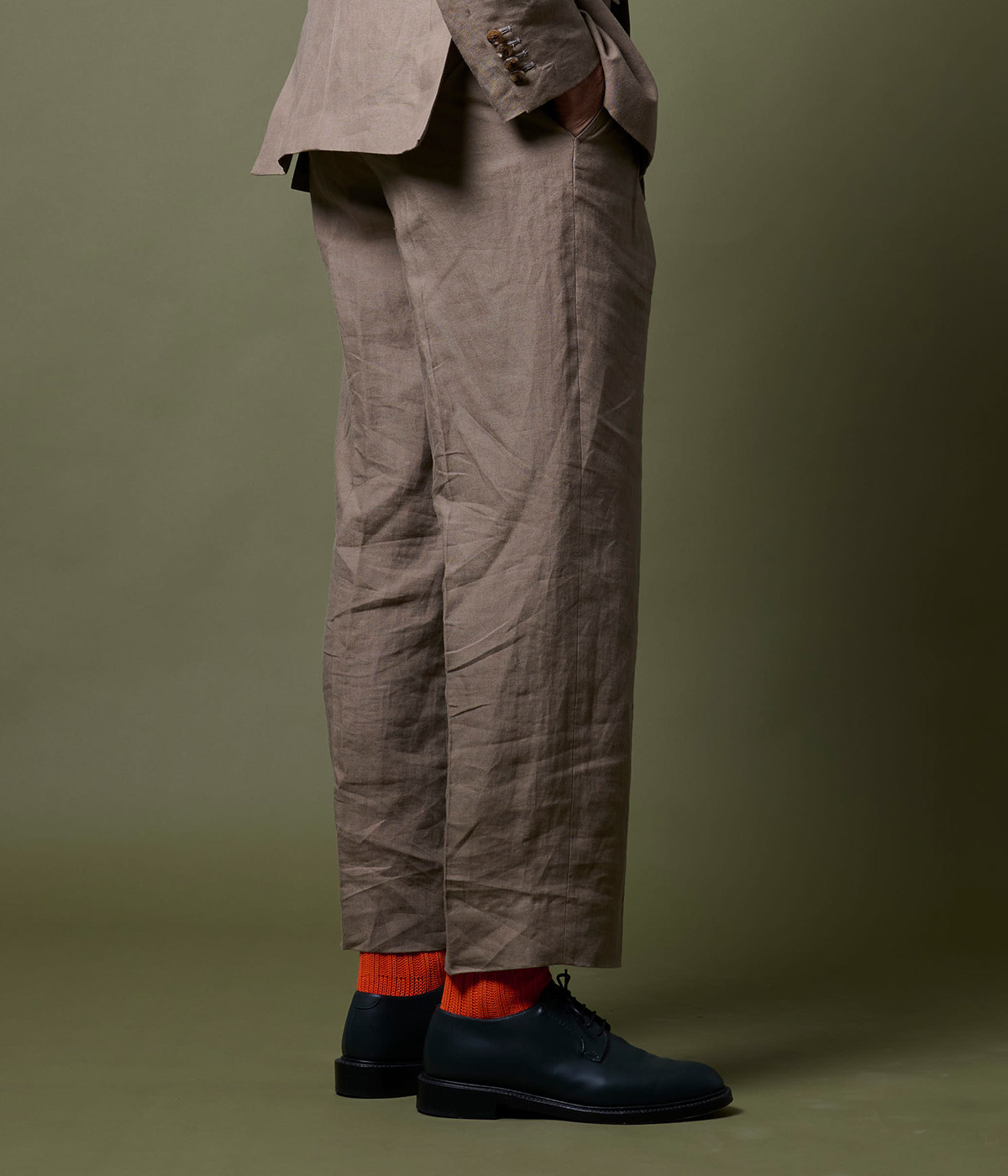 着る人のライフスタイルを格上げする、軽やかで上品なワイドスラックス。麻100%の素材感と計算されたシルエット。