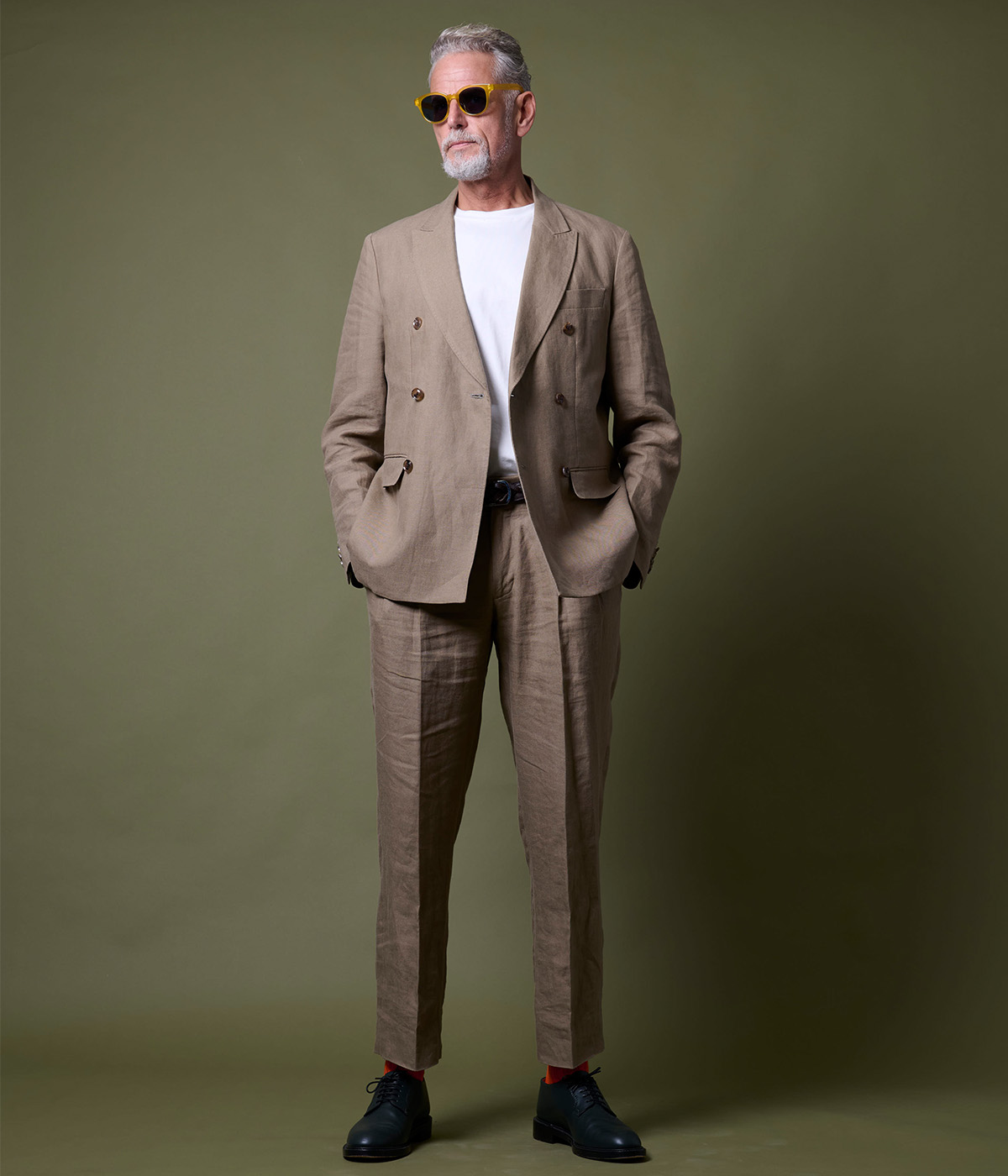 生地には1858年創業のベルギー「LIBECO-LAGAE社」のリネンを使用。 100%ベルギー産リネンにサンフォライズ加工を施し、防縮性とソフトな肌触りを両立。 発色の良さとスモーキーな色味が、大人の着こなしに奥行きを与えます。