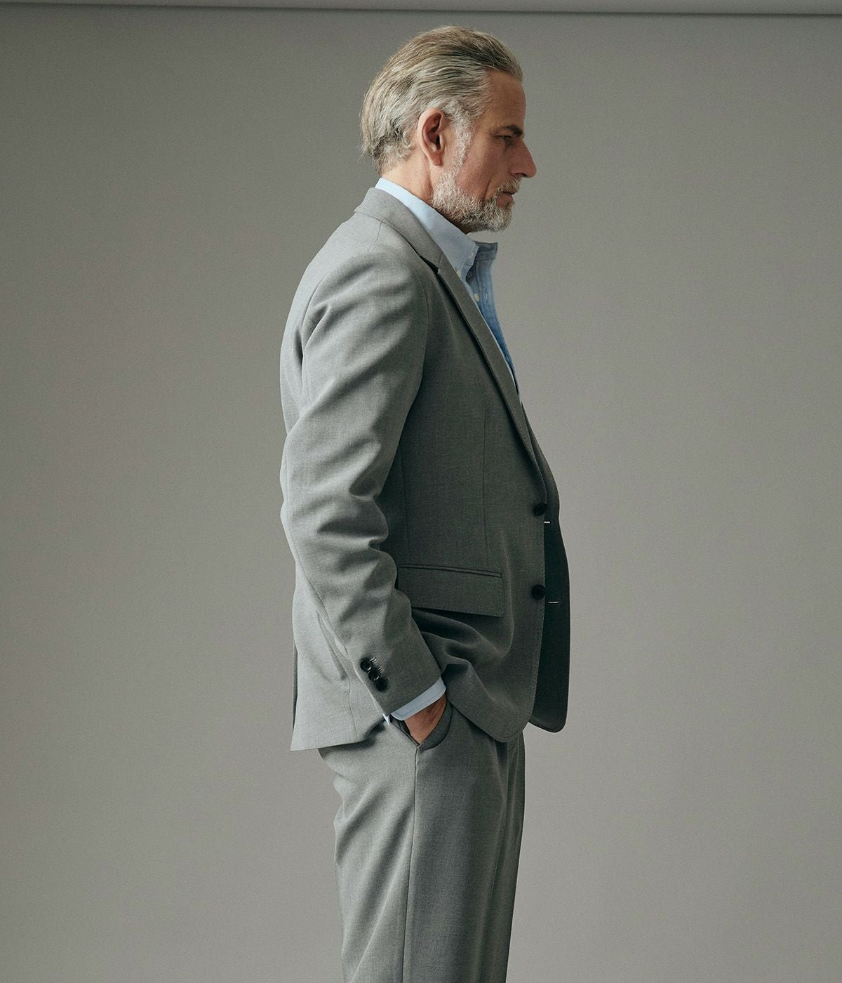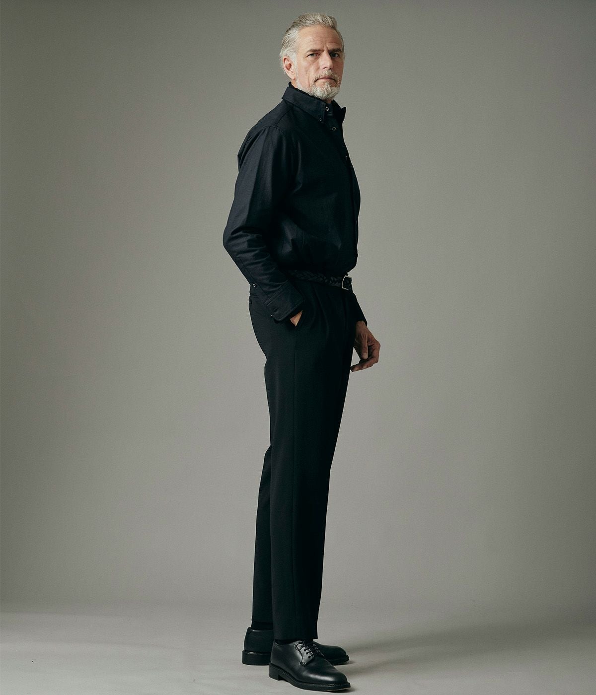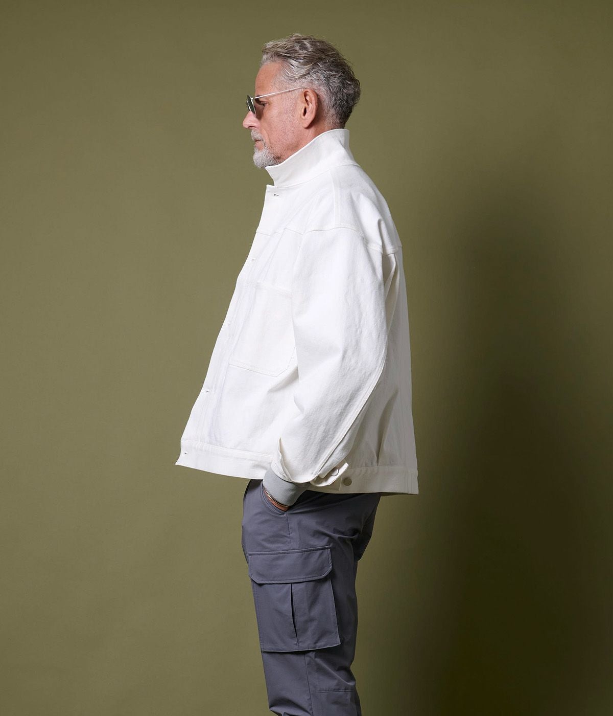 BAND COLLAR DENIM SHIRT