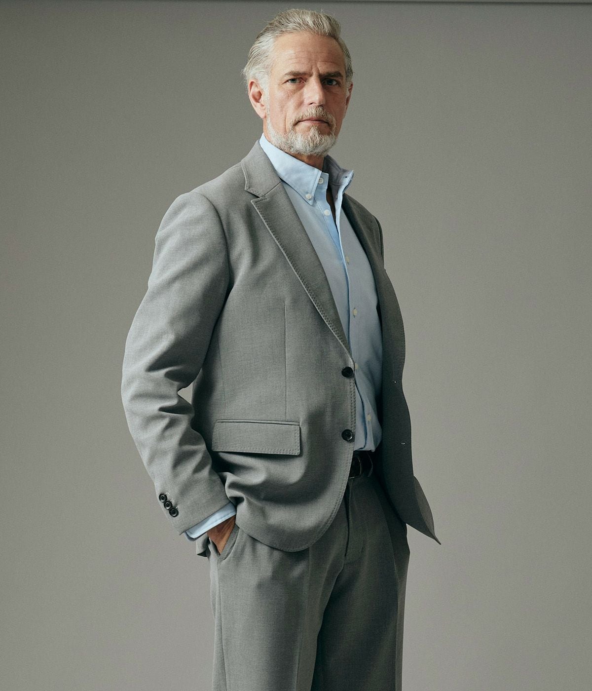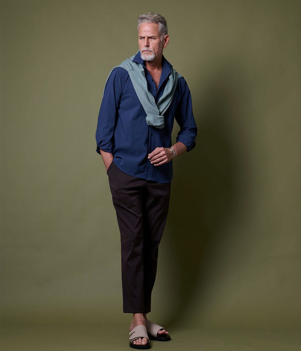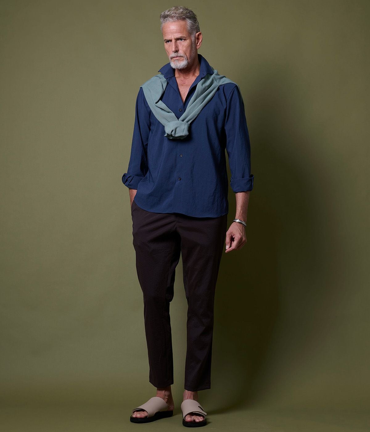 BAND COLLAR DENIM SHIRT