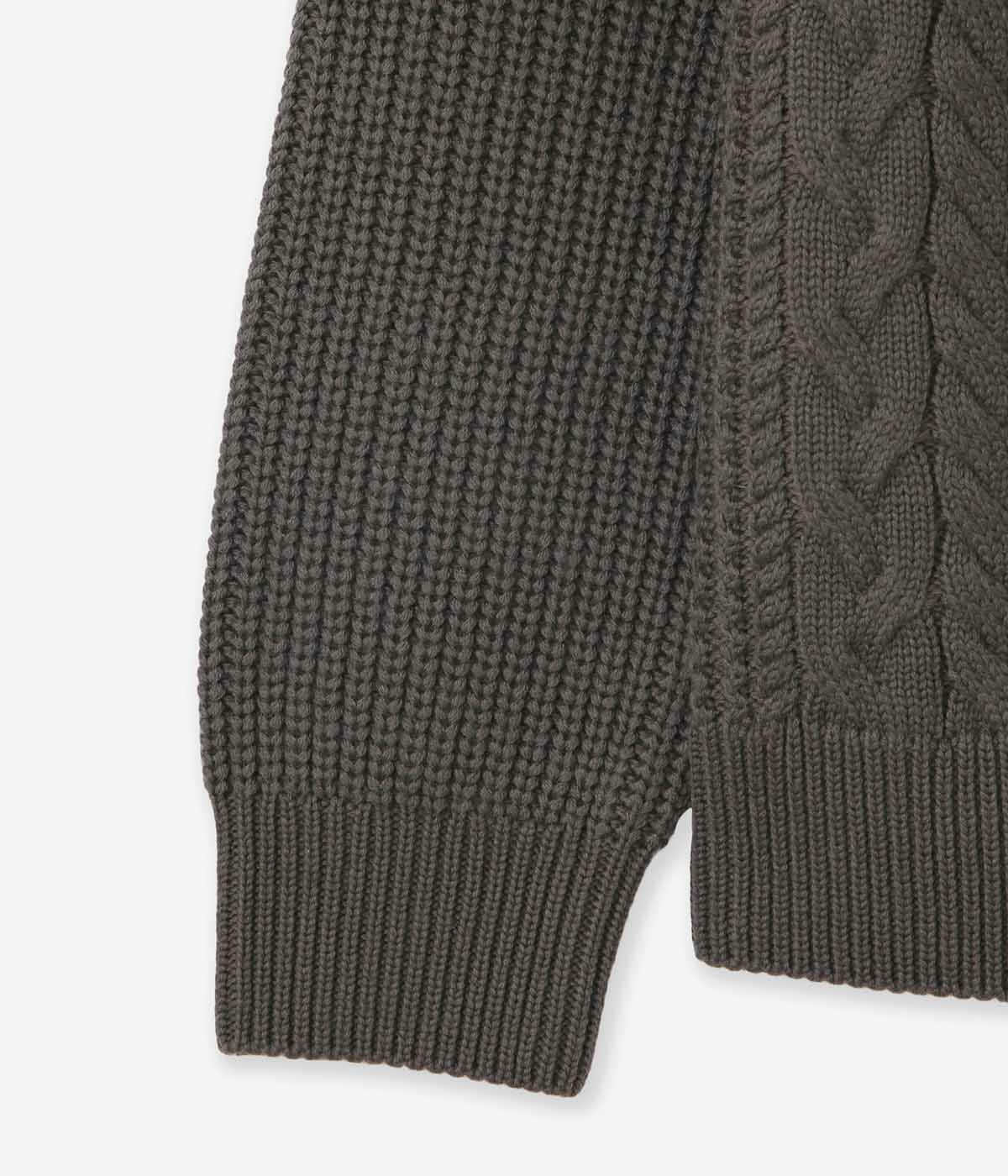 W ZIP CREW NECK KNIT