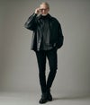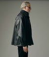 表地にはリアルレザー調に仕上げた合成皮革を使用。湿式コーティングによりソフトでなめらかな風合いを実現し、ストレッチ性も備えているため着心地は快適。見た目は重厚感がありながら、軽やかに羽織れるのが魅力です。