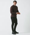 裏面起毛のヒート素材を採用し、暖かさをキープしつつ優れた伸縮性とキックバックを実現。生地の厚みを考慮してサイズ感を調整しているため、ぴったりとしたスキニーシルエットでもストレスフリーな着心地。
