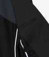 スポーツ系のトラックジャケットやパンツに用いられるような伸縮性のあるキメの細かいジャージー素材を使用。