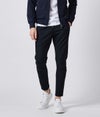 現在のボトムス事情を語る上で外すことのできないテーパードルエット。 ハイカットシューズを履いたときでも裾のイン・アウトを自由に選べる。しかもレングスは絶妙な九分丈。独自のパターンワークで形成されたモデルは、穿く方を美しく見せてくれます。 ポリウレタンを入れることで、横方向のストレッチだけでなく、縦にも伸縮する 360°ストレッチなので着心地も楽チンです。