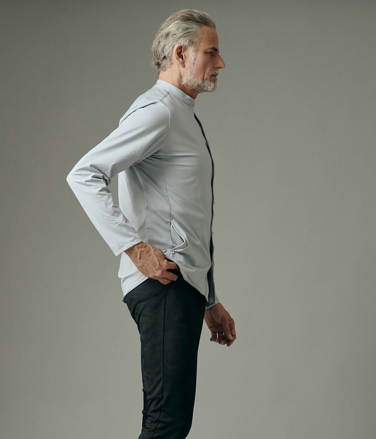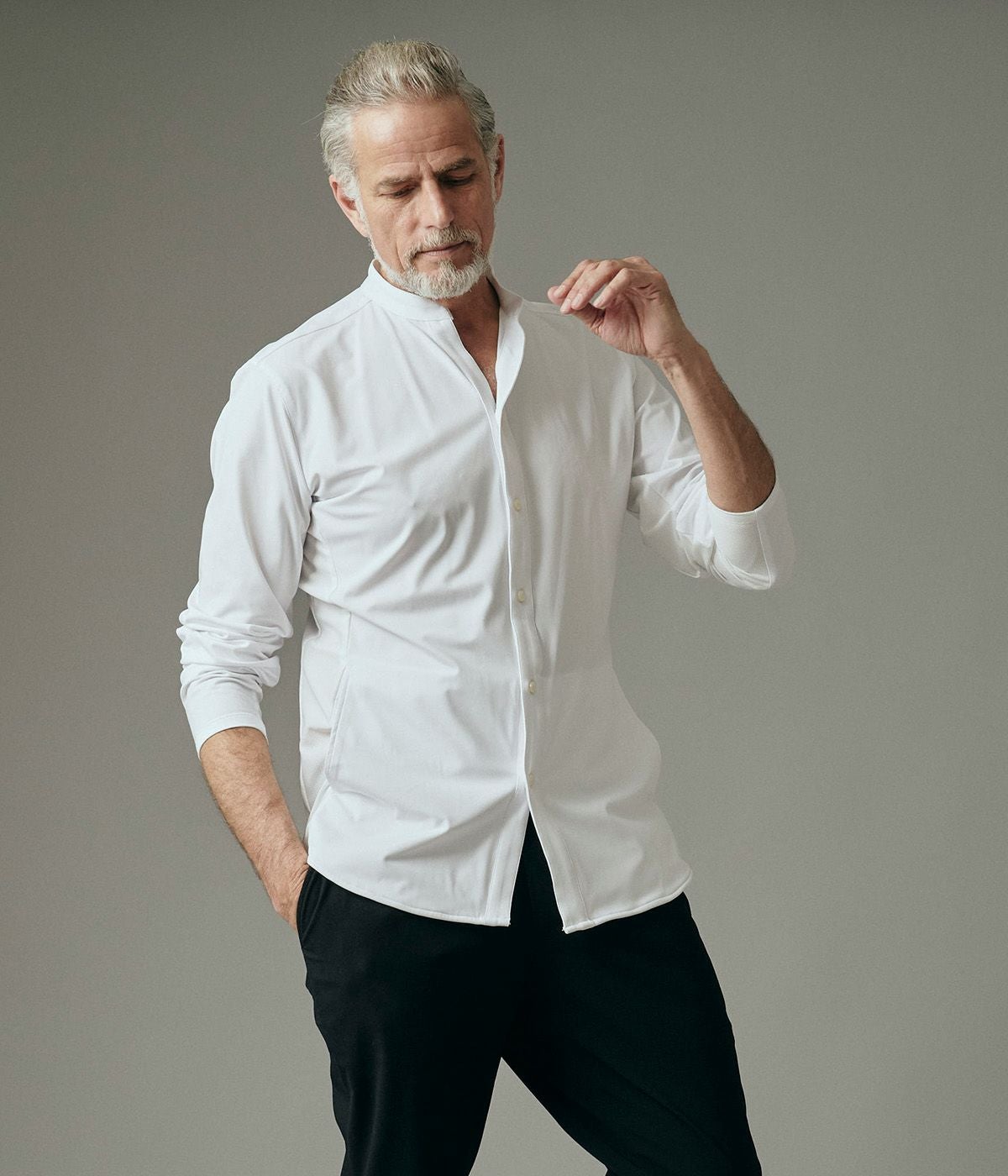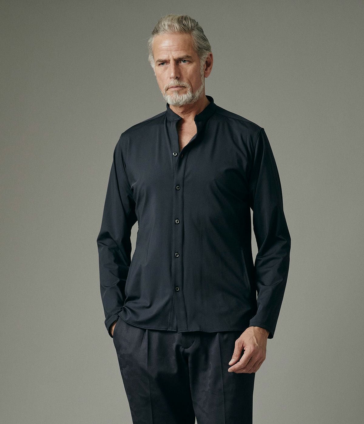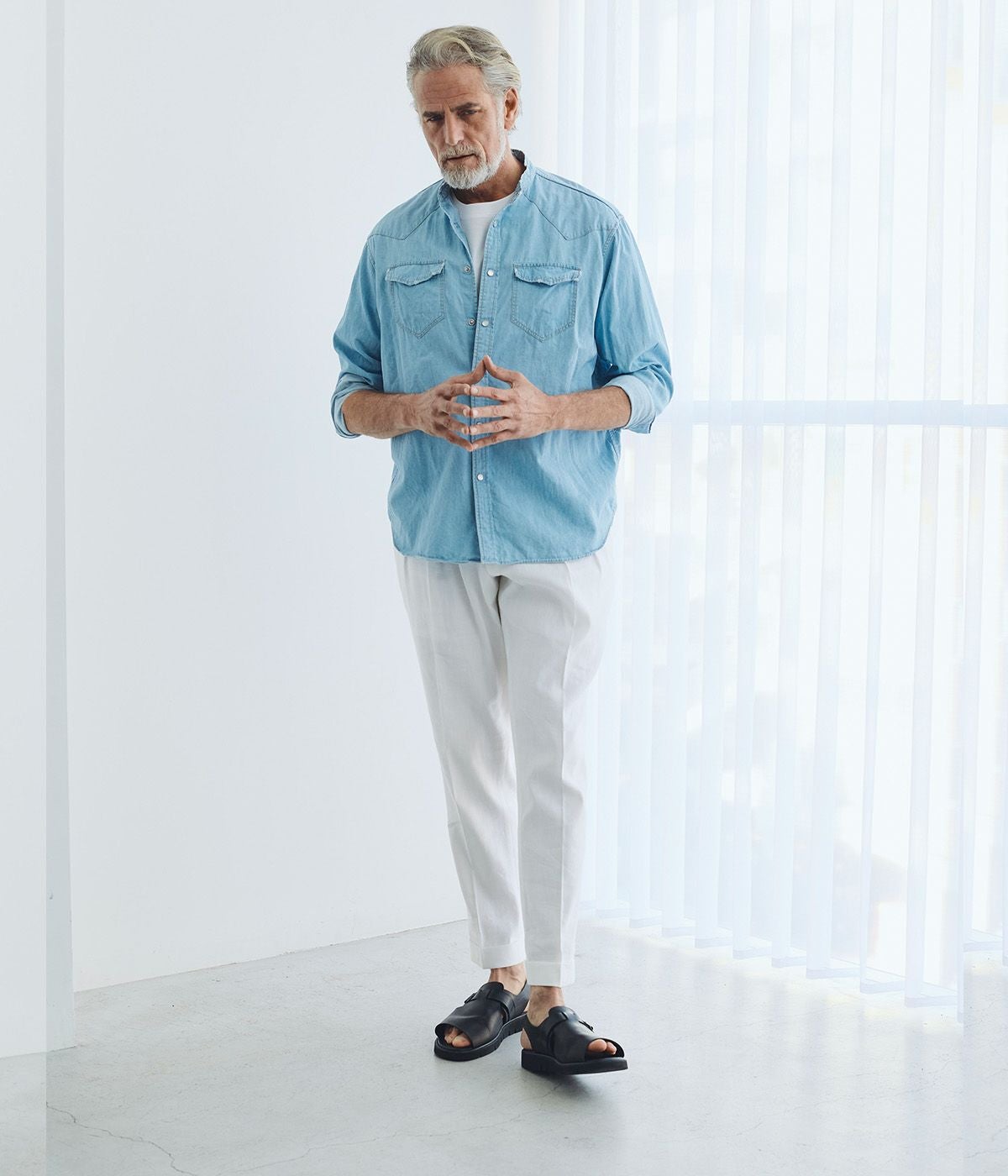 BAND COLLAR DENIM SHIRT