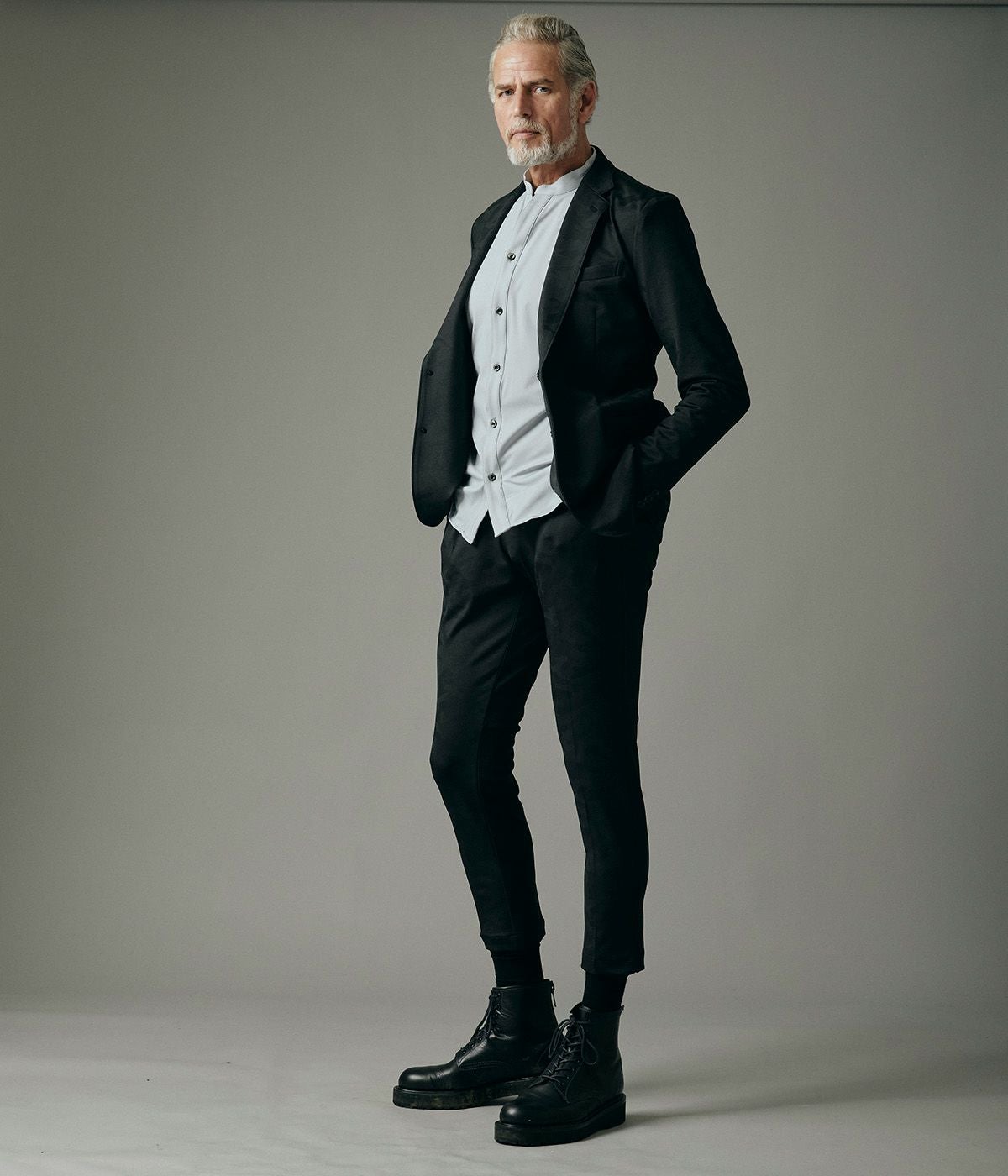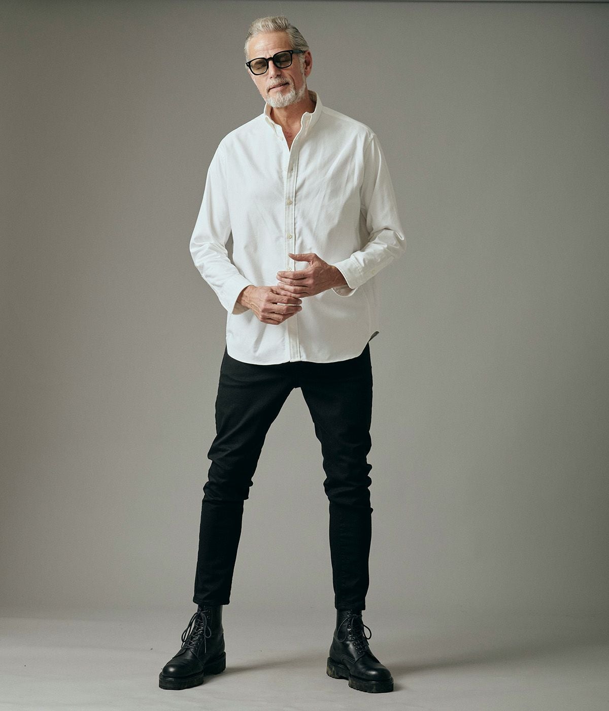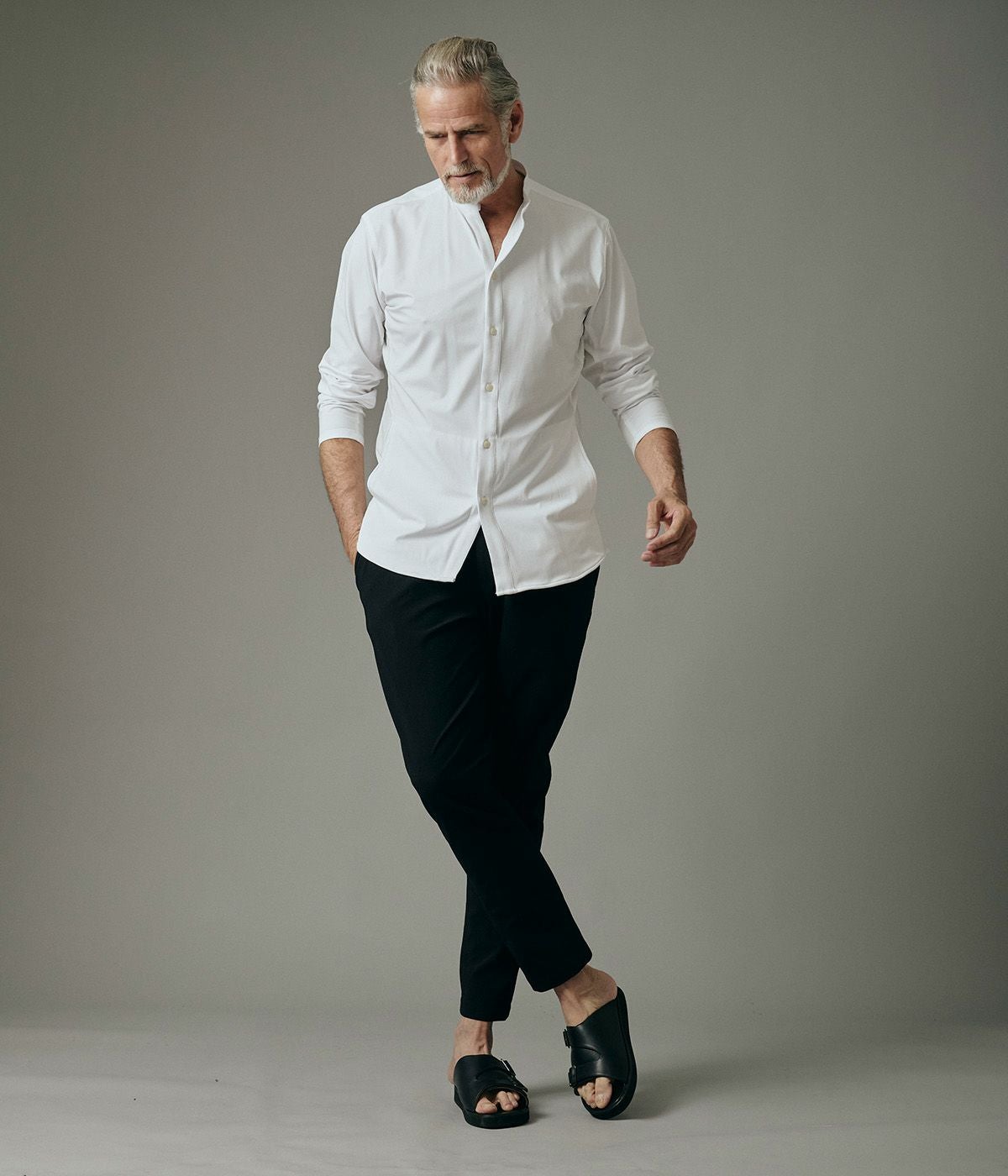 BAND COLLAR DENIM SHIRT