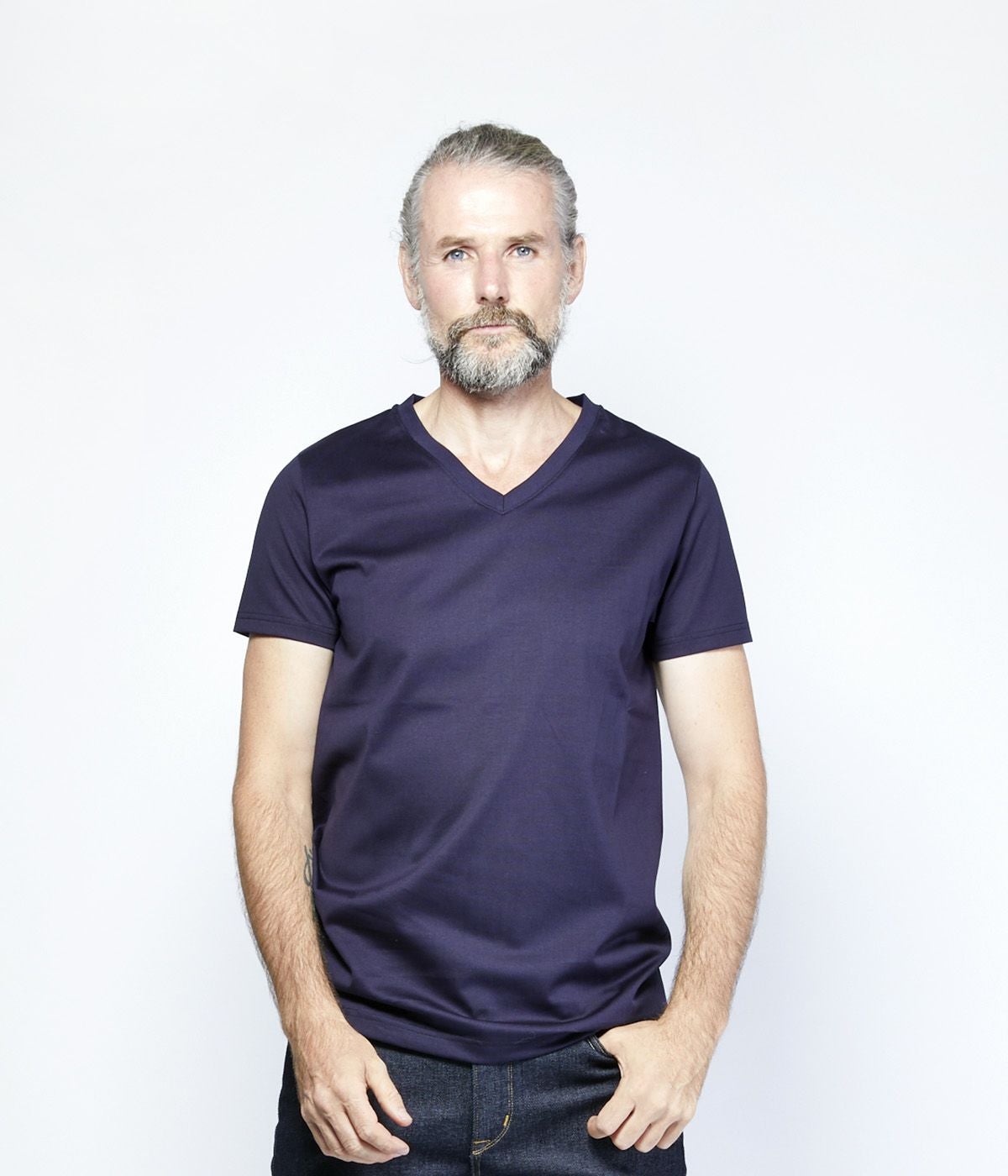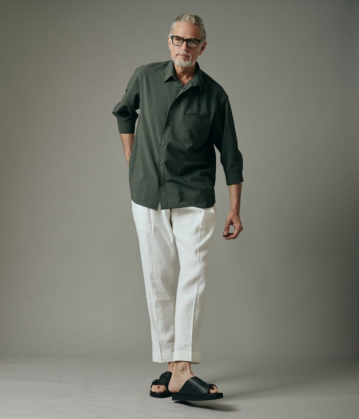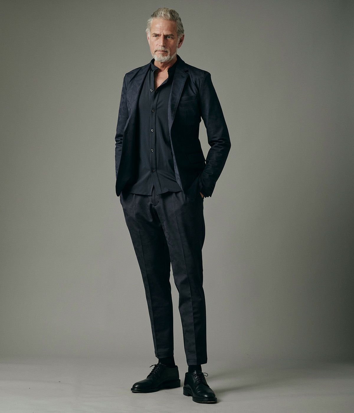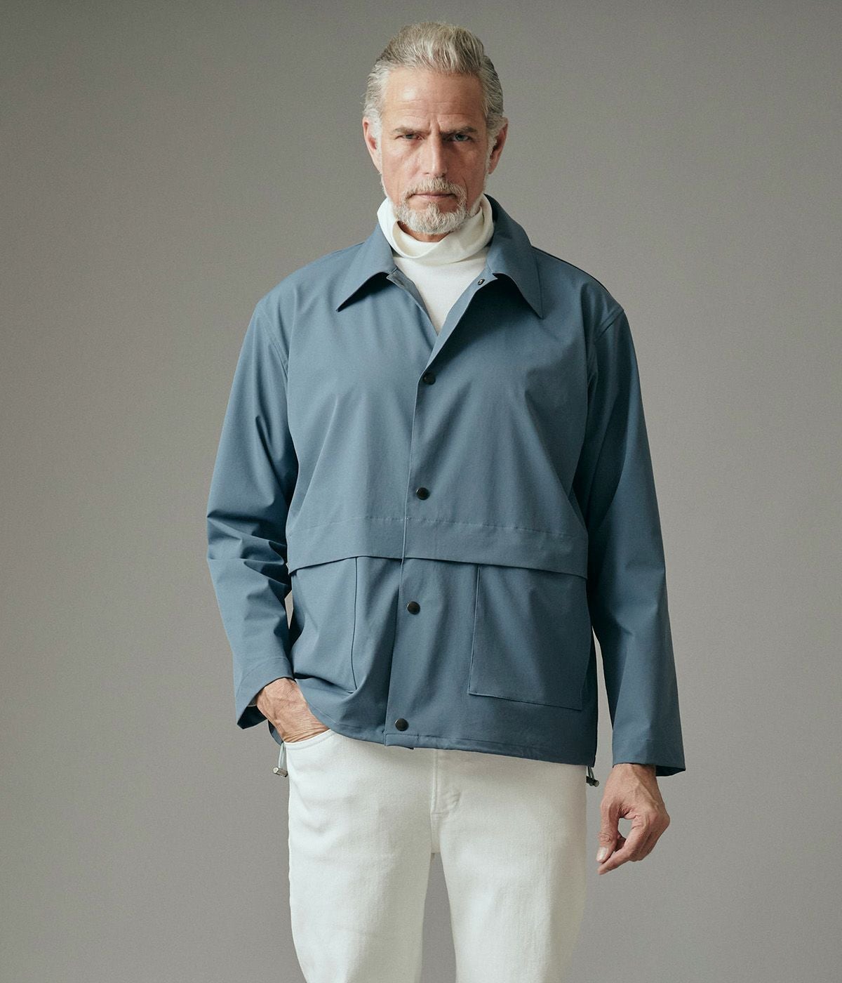 BAND COLLAR DENIM SHIRT