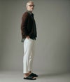 生地には、ウール番手で“2/100”にあたる超細番手のコットン100%ハイツイストヤーンを採用。度詰めの鹿の子編みで編み立てることで、肌離れがよくベタつきにくいドライな質感に仕上げています。高品質な綿糸を使用しているため、直接肌に触れてもチクチクせず、素肌でも快適な着心地を実現しています。