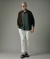 シルエットは顔まわりをすっきり見せてくれるVネックスタイル。シャツやTシャツとのレイヤードも自然に決まります。前立てには天然の本水牛ボタンを使用し、クラシックかつ上質な印象に。軽やかに羽織れる薄手設計で、春・夏・秋と季節をまたいで活躍してくれます。