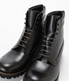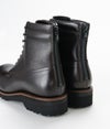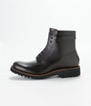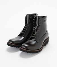 マウンテンブーツの要素を使いながら進化させた進化系バックジップブーツ。 "フランス中部にある、カーフスキン専門の老舗タンナー アノネイ社の『VOCALOU(ボカルー)』という種類のBOXカーフを採用。 上質なフランス原皮を使用しているので吟面は滑らかでキメが細かく、落ち着いた艶を有しています。吟面を谷折りにすることで浅く細かいシワが入るのもBOXカーフの特徴です。 Vibram社製軽量ソールを採用し、これだけボリュームがあるしっかりとしたブーツでも、 普通のハイカットスニーカーと変わらないくらいの軽さにしています。