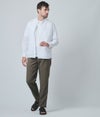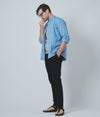 ゆったりとしたシルエットと長めの着丈で、シャツとしてはもちろん、軽い羽織りとしても使える万能アイテムです。