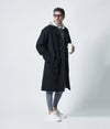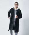従来のタイロッケンコートにはない、フロントボタンを取り付け、またタイロッケンの雰囲気を感じさせるマグネットボタンで、ラップ調の着方もできるため、気分やコーディネートで着方を変更可能。