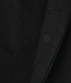 フロント部には起毛したメルトン調の素材を組み合わせ、周りのウールの素材と同色異素材にさせ、異素材のおりなす絶妙な表情。またこの起毛部分はマグネットボタンを閉めるとほとんど見えず、動いた時にわずかに見える異素材がこなれたおしゃれ感。