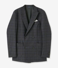 裾四釦、ピークドラペル、袖口三釦、サイドベンツ。junhashimotoの得意とする粋で男らしいジャケットです。