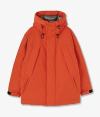 シルエットはオーバーサイズ。やや長めの着丈にルーズな肩周り、さらにjunhashimotoが得意する立体的でボリューム感のあるフードが魅力。さらにフロントファスナーはラッカー二を使用。
