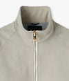 ラグランスリーブにフロントZIP。余計な装飾を排除し、シンプルにそしてエレガントに。またシルエットは細身で洗練された印象に仕上げた。 素材は22AWでも人気だったモンスターコットンストレッチ。 ニットの4倍の伸びをしながら93%戻る新素材経糸に強撚糸を使用し液体アンモニア加工+防シワ加工を施した。この特殊な加工によりシワになりにくい上、生地の見た目の割りに表面は滑らか。数多くの海外メゾン生地を供給している尾州生地屋で作成されたMADE in JAPAN素材。