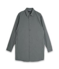 着丈は長めのデザイン。シャツのような軽い素材感とコートのようなシルエットは汎用性の高い万能アイテムです。