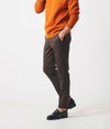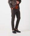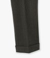 スリムパンツと英国産の伝統生地のコンビネーション