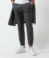 1タックとサイドゴムを配置し締め付け感を抑えた腰回りと、膝から下へはjunhashimotoの得意とするテーパードをかけ、アクティブな可動域とキレイなシルエットを両立しています。