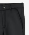 内側に湾曲したバナナシルエットは高いフィット感はもちろん、膝に生地の皺がよることで脚を立体的に、そして長く見せることができます。そしてイージーパンツでも品よく履けるように、ウエストゴムは後身頃にのみ取り付けています。