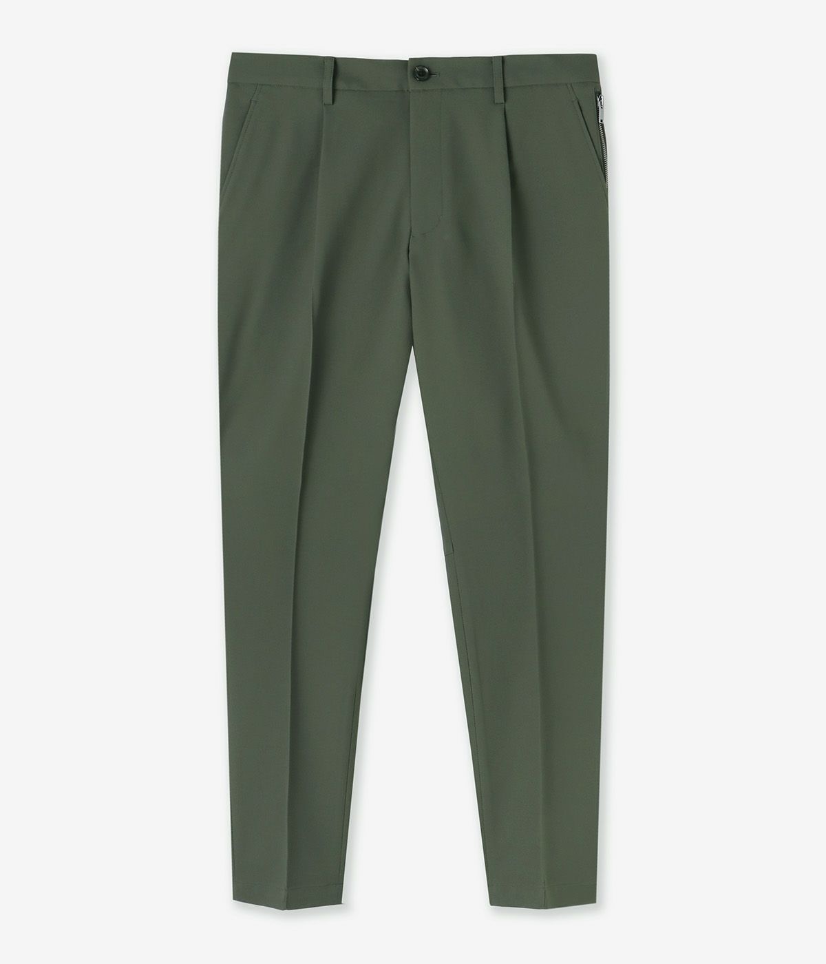 1タックデザインで、ウエストスピンドルを省き、シンプルで洗練されたシルエットに仕上げました。少しキレイ目に整えられているため、ビジネスからカジュアルなシーンまで幅広く対応可能。左脇には、イタリアのラッカーニ社製ファスナーを採用し、高級感をプラス。