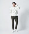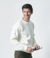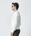 通常のニットより撚りを甘く仕上げる事により、綿の柔らかな風合いとカシミヤの風合いを融合させた逸品。カシミヤの糸を紡績する際の工程で必ず出てしまう綿をリユースし再度ブレンドし紡績した、サスティナブルな素材となっています。