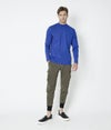 スポーツウェアではナイロンやポリエステルを使用することも多いが、コットンストレッチ素材なため、化繊特有の光沢はなく非常に落ち着いた上品な仕上がりとなっております。