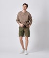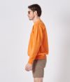 ラグラン袖のリラックスしたシルエットに、袖部分に当て布をつけたデザイン。ゆったり感を持たせつつも、幼くまたルーズに見えない絶妙なシルエットを作り上げた。 また素材は製品染めではなく、生地に特殊な加工(FIM加工)を施したものを使用。通常スウェットなどは製品染めをするため、その加工の過程で縮みや痛みが生じ、その風合いがUSED感を生むものだが、それゆえに着心地の硬さや、見た目のカジュアルさが出てしまいます。しかし今回は製品染めを行わず、あえてUSED感を生地に与える加工を行っているため、スウェットでも生地の柔らかさがあり、着心地は抜群。それでいて使い込んだスウェットのような風合いを出すことに成功した。