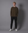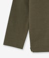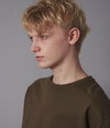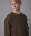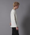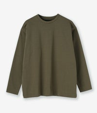 独特な硬さを持つオリジナル原料を使用して編んだ天竺生地。目ズラの美しさ、ハリコシ感、軽さの絶妙なバランスが取れた完成度の高い生地を使用。 気取らず楽に着られるシルエットが魅力。 ラグラン袖のオーバーシルエットで単品使いからインナー使いまで幅広くお使いいただけます。