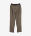 “テンセルウールチェック”素材を使用したタックパンツ。テンセル×ウール素材が相まって、上品な光沢・抜群の保温性・柔らかな肌触りを生み出し、