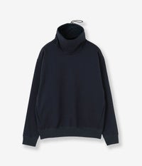 junhashimotoならではの立体的なルースハイネックが登場。 ハリ感のあるジャージ素材は伸縮性に優れた快適な着心地に加え、立体的なシルエットを構築。ネック部分を上まで上げ後ろのドローコード引くと簡易的なマスクとしても利用可能。また、内側に施されたメッシュ素材がマスクとしての機能をより高めてくれます。
