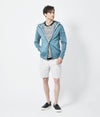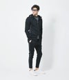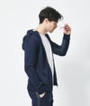 前見頃にはラッカーニ社製ファスナーを使用。素材感と相まって艶感のあるカジュアルウェアを表現。