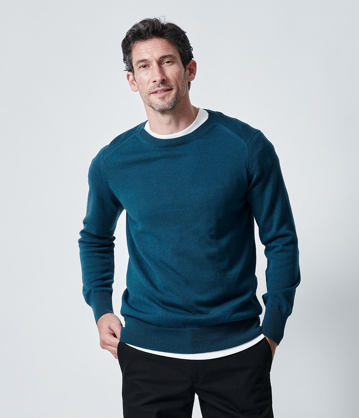 イタリア産最高級ウールを使用したシンプルリッチなクルーネックセーター。