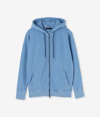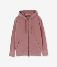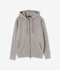 アメリカで栽培された超長綿のスーピマ綿に強度のあるポリエステル糸を加え編みあげ、ミニ裏毛を製品の状態でピグメント加工(顔料染め)を施したヴィンテージ風パーカーが登場。