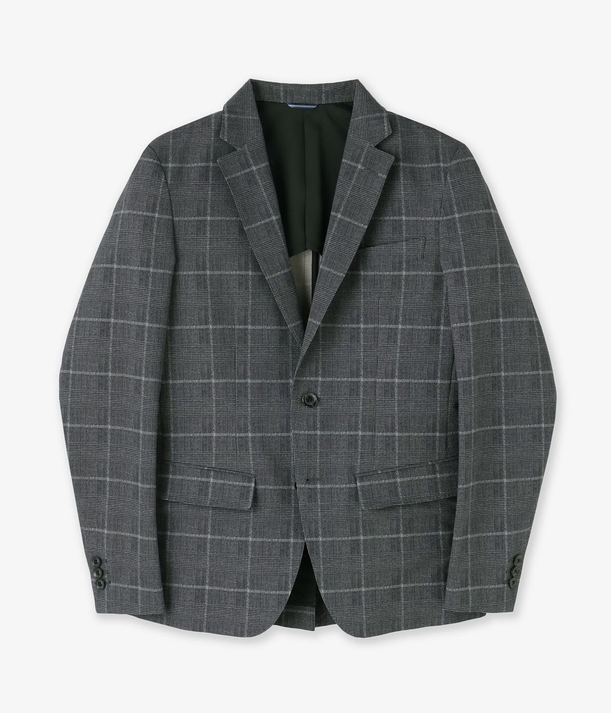 麻調のチェック柄が上品な「LIGHT 2B JACKET -STRETCH GREN CHECK-」