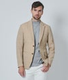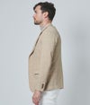 軽やかで洗練された印象を与える2Bジャケット。ストレッチ性のあるサッカー調素材に、麻混のような風合いを再現した特殊プリントを施し、都会でもリゾートでも映えるデザインに仕上げました。