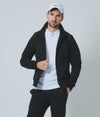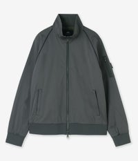 スタンドカラーとラグランスリーブが動きやすさをサポートし、袖口と裾口にはリブニットを使用してフィット感をアップ。立体的なシルエットが一般的なストレートシルエットとは異なるモダンな印象を与えます。フロントは全開可能なジッパー付きで、着脱がスムーズです。