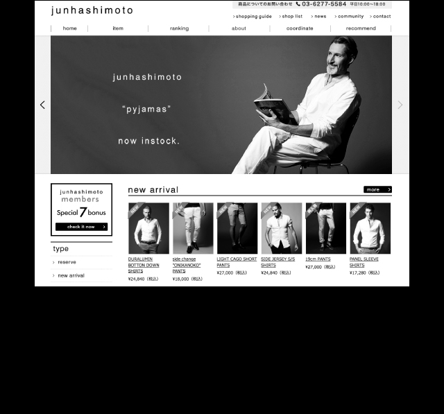 デザイナーは「wjk」創設者の橋本淳。方向性の違いにより同ブランドを離脱後、30代を迎えたある意味「ファッションに疲れた大人の男」の為の服とし「junhashimoto」を設立。コレクション形態は、大枠としてのテーマを持たせつつも、デザイナー橋本淳の枠を枠としてみない良い意味で奔放なデザインが特徴。 junhashimoto 公式通販サイト
